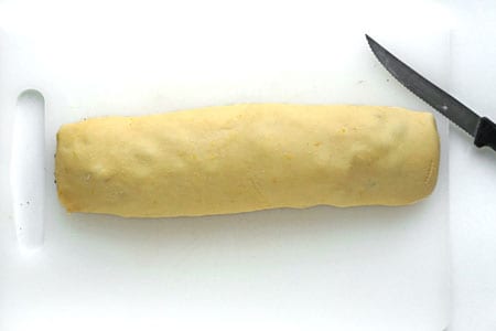 - Die erkaltete Teigrolle aus dem Kühlschrank nehmen.
